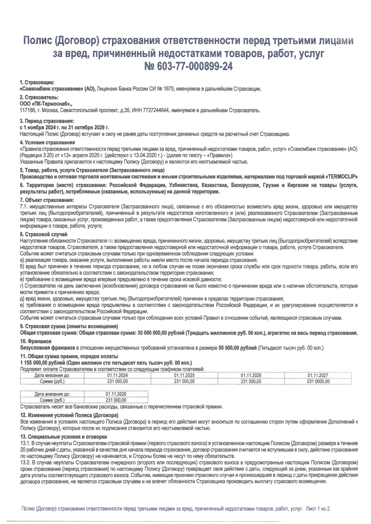 Страховое обязательство