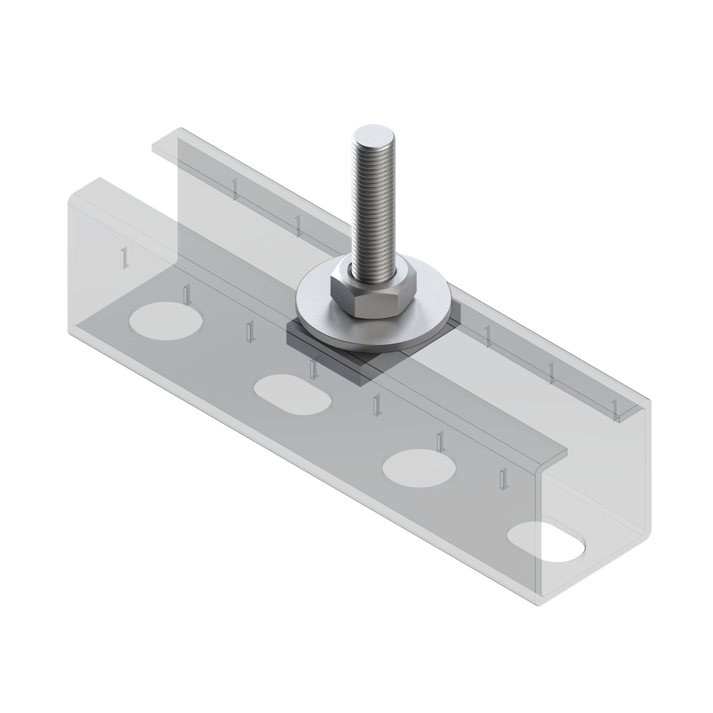 - Применяется в качестве крепежа для раскрепления различных узлов (профили, консоли, хомуты) с применением резьбовых соединителей.