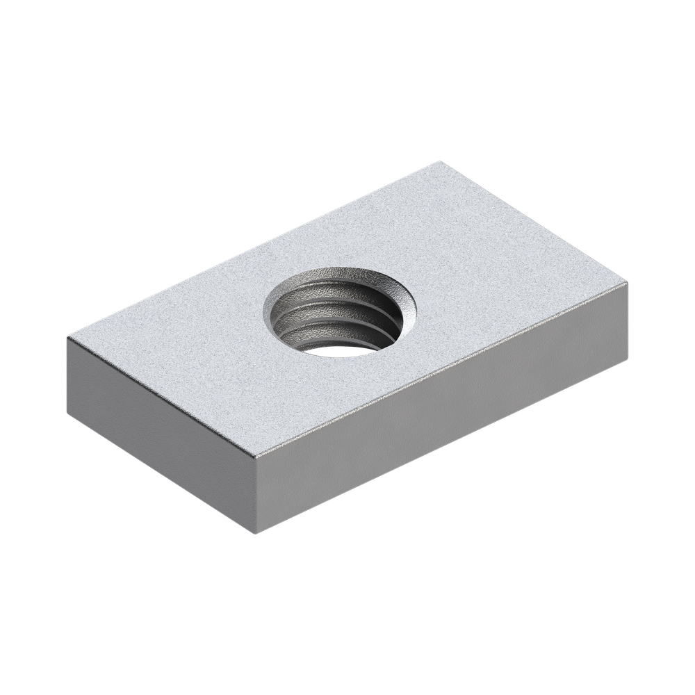 Резьбовая ромбовидная пластина, вставляемая в профиль монтажный/консоль 28х18; 28х30. Косоугольная пластина с резьбой предназначена для прикрепления шпилек к монтажным шинам или консолям. Чтобы предотвратить непредвиденное ослабление соединения, рекомендуется зафиксировать пластинус помощью гайки с шайбой.Материал: