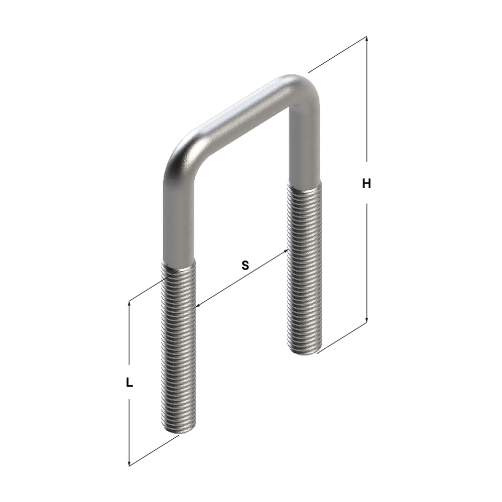 Хомут П – образный, скоба резьбовая. Используется при подвесе балок, труб квадратного или прямоугольного сечения на горизонтальных или вертикальных поверхностях. Крепление осуществляется при помощи гаек и шайб. Дополнительным крепёжным элементом может служить прижимная пластина.Материал:
