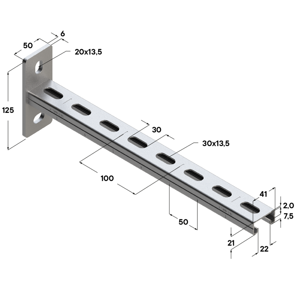 - Единое направление продольных пазов в опорной плите обеспечивает хорошуювыверку консоли по высоте при крепеже на профиле.