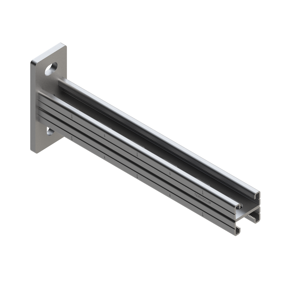 Предназначены для монтажа средних и тяжелых инженерных систем на относе от пола, стен и потолочных конструкций зданий и сооружений. В комбинации с различными элементами монтажных систем дают возможность получать сложные пространственные конструкции. Могут использоваться в виде опор. Идеально подходят в качестве выступающей несущей конструкции трассы трубопровода. Возможно использовать в качестве консольной балки для крепления вентиляционных каналов и кабельных лотков. В сочетании с седлообразными и торцовыми фланцами консоль используется в качестве траверсы для крепления труб в шахтах и каналах. Позиционирование прикрепляемых элементов в двух плоскостях. Рекомендуется для применения в сухих, влажных помещениях.Материал: