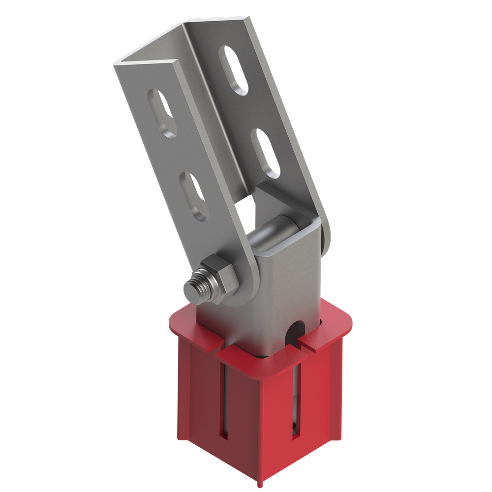 Изделие используется совместно с опорами тип TSS и фланцами седельными универсальными тип TSF в узлах соединения с профилями монтажными тип TSC для их установки под необходимым углом при сборке рамных и каркасных конструкций различного назначенияМатериал:
