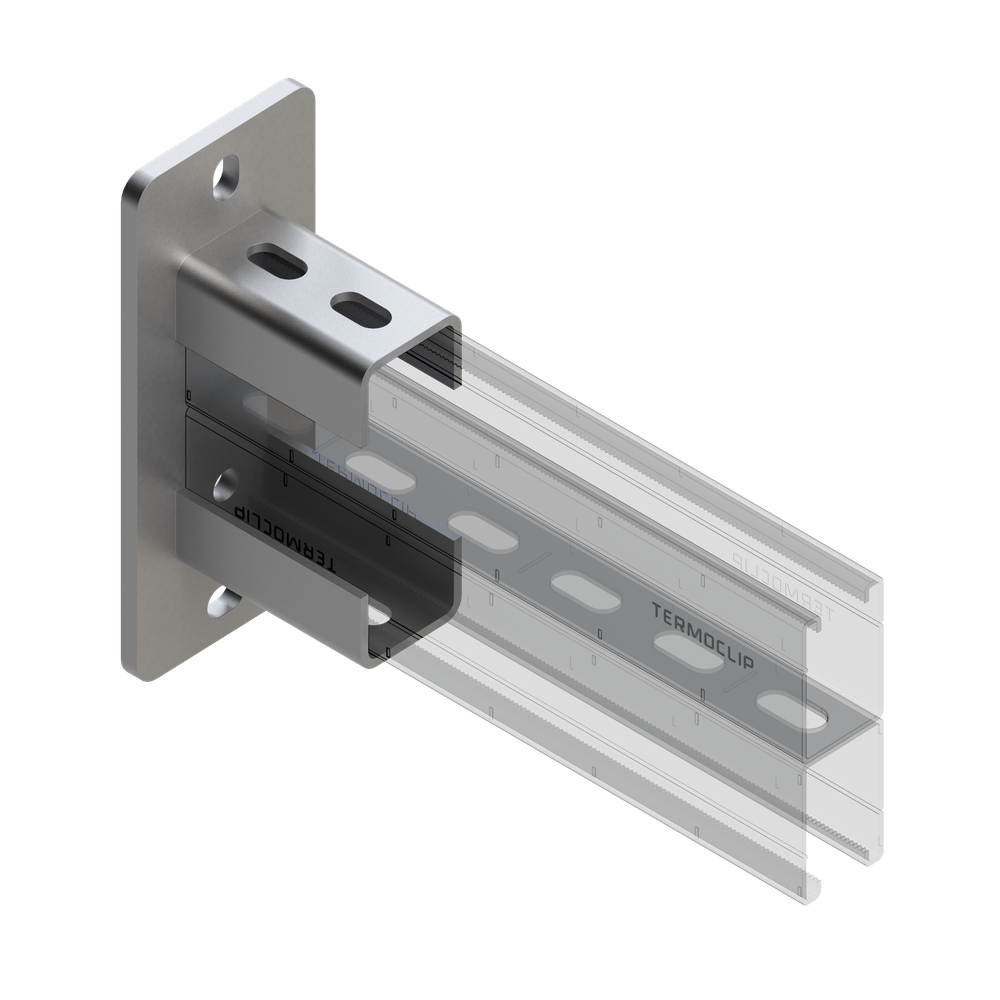 Опорный элемент для крепления монтажных профилей к полу, стене или потолку. Возможность использования в качестве основания (опорного элемента) консольной балки для крепления вентиляционных каналов, воздуховодов, трубопроводов и кабельных лотков.Подходит как элемент конструкции для двустороннего монтажа участков трубопровода, то есть с нижним и верхним расположением трубопроводов.Материал: