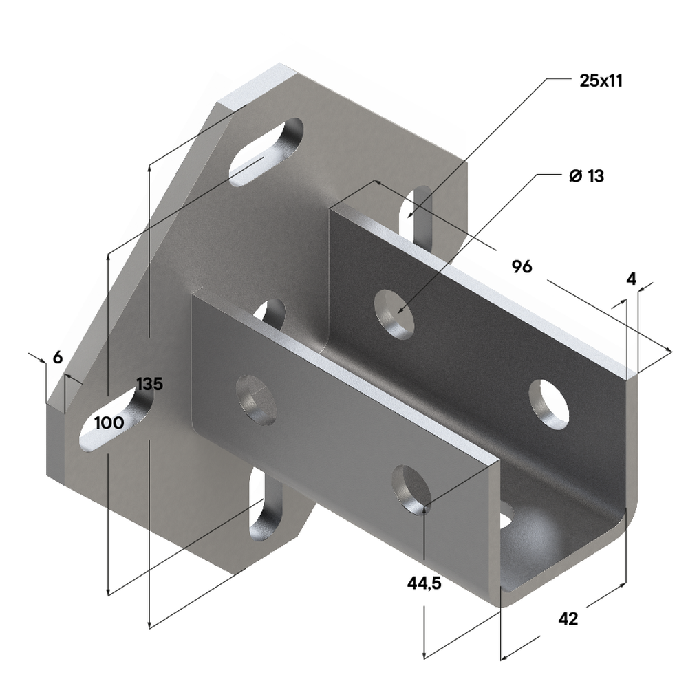 - Наличие четырех профильных отверстий в пластине основания опоры облегчает монтаж и позволяет выполнять небольшую регулировку опоры даже после установки на основание.