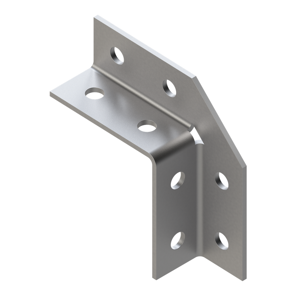 Прочный универсальный угол предназначен для соединений элементов конструкций траверс, рамных и стеллажных систем. Угол обеспечивает усиление несущих конструкций для средних и тяжелых систем.Материал: