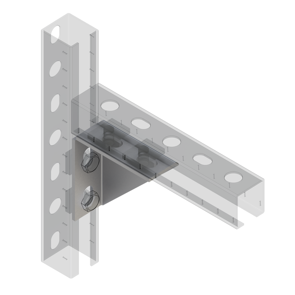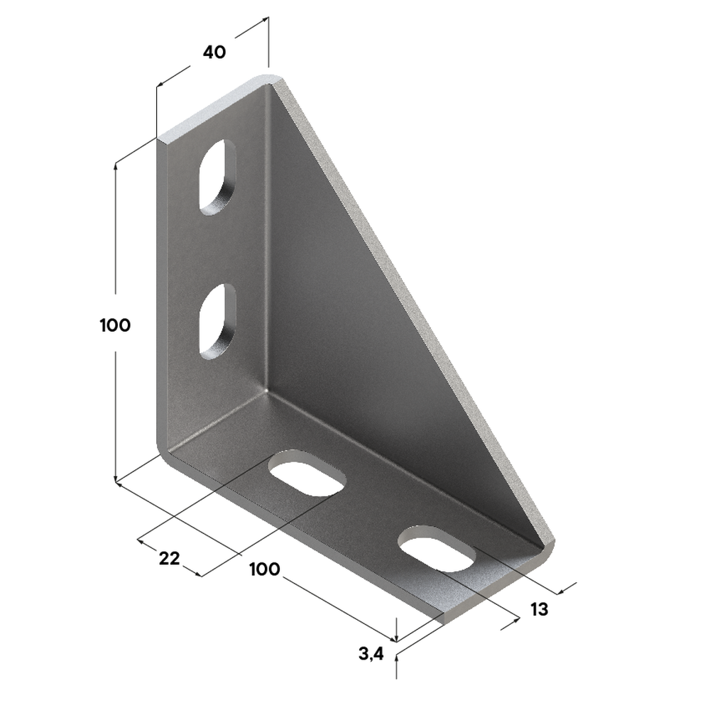 Прочный усиленный угол предназначен для соединений элементов конструкций профилей, рамных и стеллажных систем. Сплошная угловая консоль обеспечивает усиление несущих конструкций как для средних, так и для тяжелых систем с учетом статических нагрузок. Эффективное использование усиленного угла для монтажа непосредственно на перекрытии, стене и полу. Для монтажас профилями в качестве: подпорки, кронштейна, опорного основания, узлового соединения, упорного угола, соединительного элемента, угловой консоли.Материал: