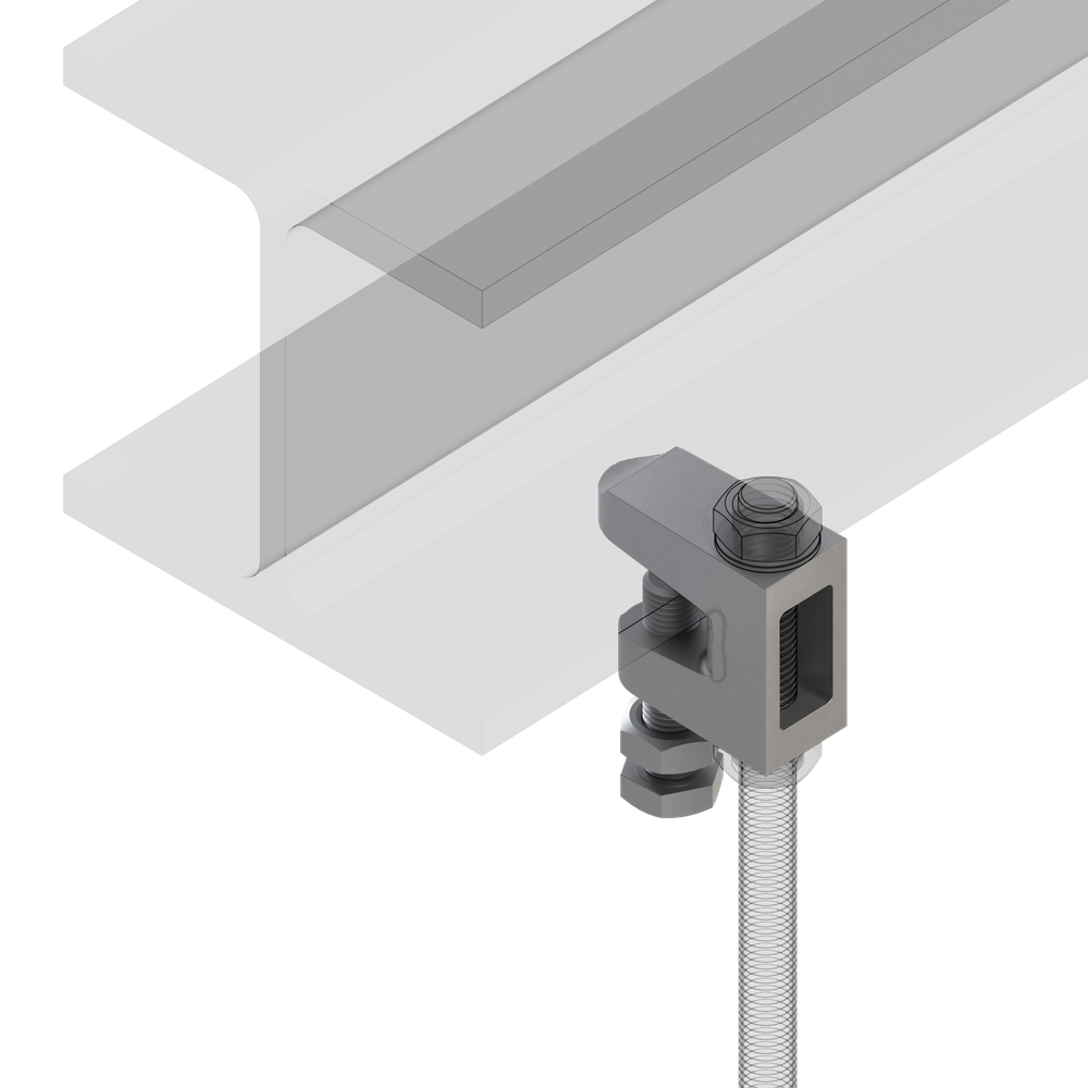 Струбцина для крепления резьбовых шпилек к стальным балкам без нарушения ихцелостности и снижения несущей способности.Материал: