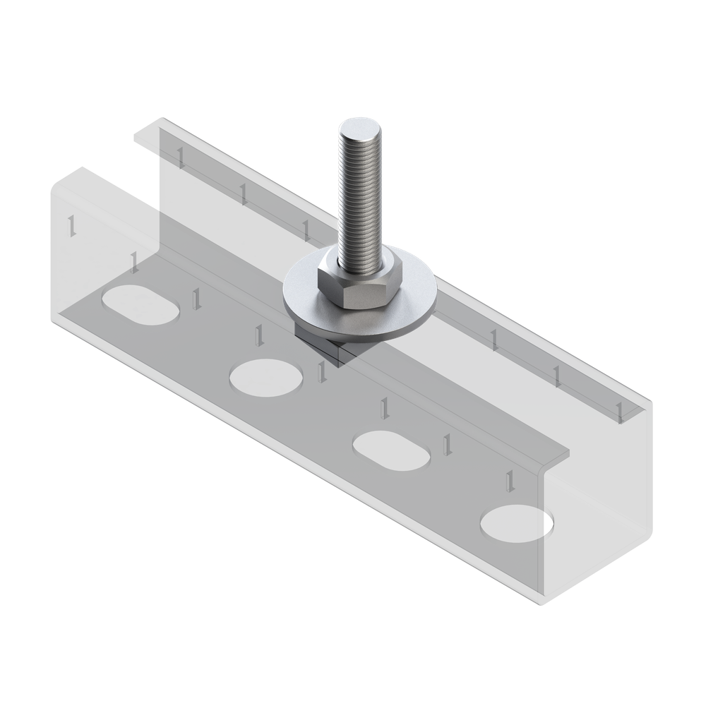 - Применяется в качестве крепежа для раскрепления различных узлов (профили, консоли, хомуты) с применением резьбовых соединителей.