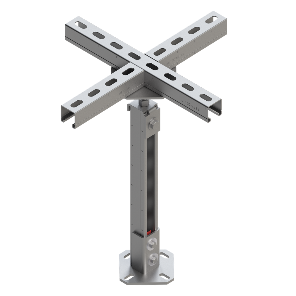Опора регулируемая типа TRF PS применяется при устройстве системы фальшпола Termoclip для точного выставления уровня несущих стрингеров (шаг регулировки высоты - 0.1 мм, диапазон регулировки 0-80мм).Материал: