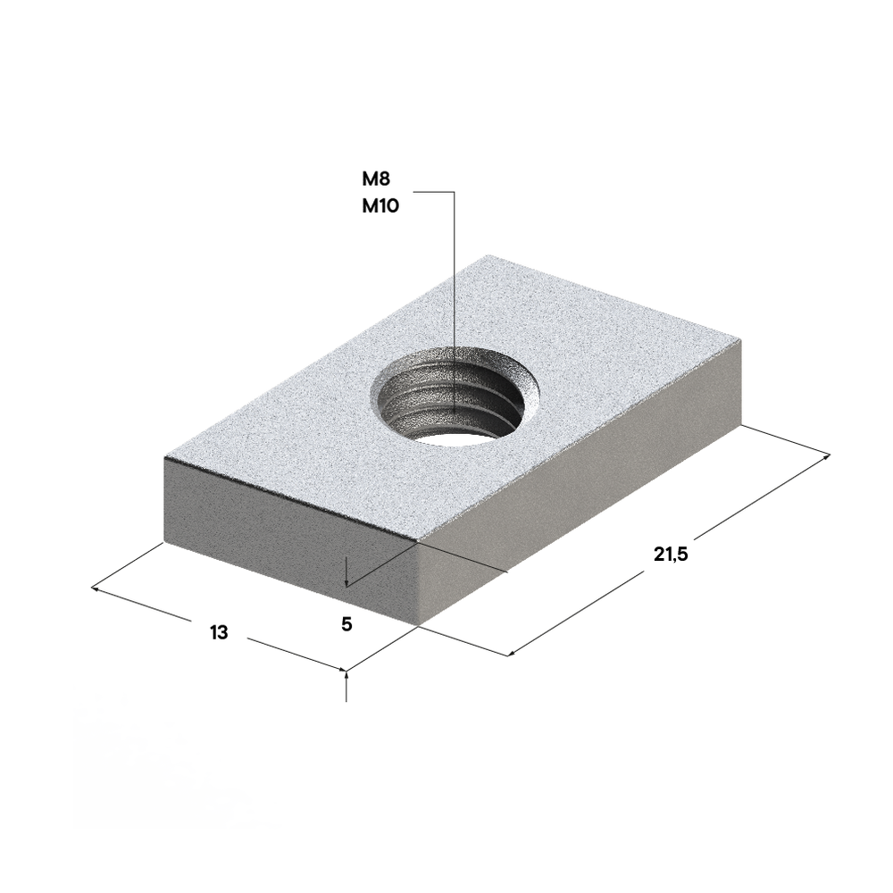 Резьбовая ромбовидная пластина, вставляемая в профиль монтажный/консоль 28х18; 28х30. Косоугольная пластина с резьбой предназначена для прикрепления шпилек к монтажным шинам или консолям. Чтобы предотвратить непредвиденное ослабление соединения, рекомендуется зафиксировать пластинус помощью гайки с шайбой.Материал: