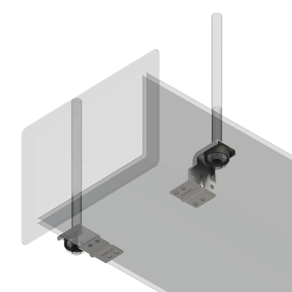- Технологические прорези в кронштейне обеспечивают быстрый монтаж воздуховодов прямоугольного сечения при помощи шпилек.