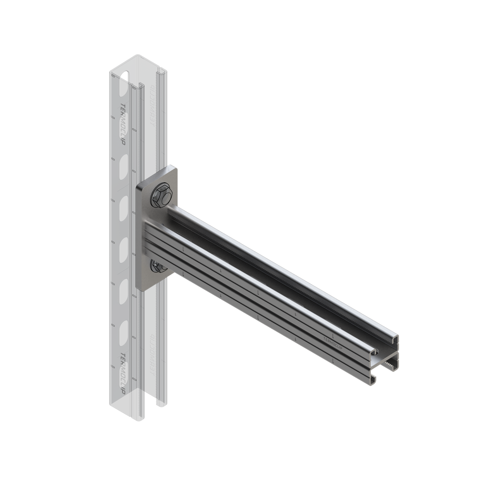 Предназначены для монтажа средних и тяжелых инженерных систем на относе от пола, стен и потолочных конструкций зданий и сооружений. В комбинации с различными элементами монтажных систем дают возможность получать сложные пространственные конструкции. Могут использоваться в виде опор. Идеально подходят в качестве выступающей несущей конструкции трассы трубопровода. Возможно использовать в качестве консольной балки для крепления вентиляционных каналов и кабельных лотков. В сочетании с седлообразными и торцовыми фланцами консоль используется в качестве траверсы для крепления труб в шахтах и каналах. Позиционирование прикрепляемых элементов в двух плоскостях. Рекомендуется для применения в сухих, влажных помещениях.Материал: