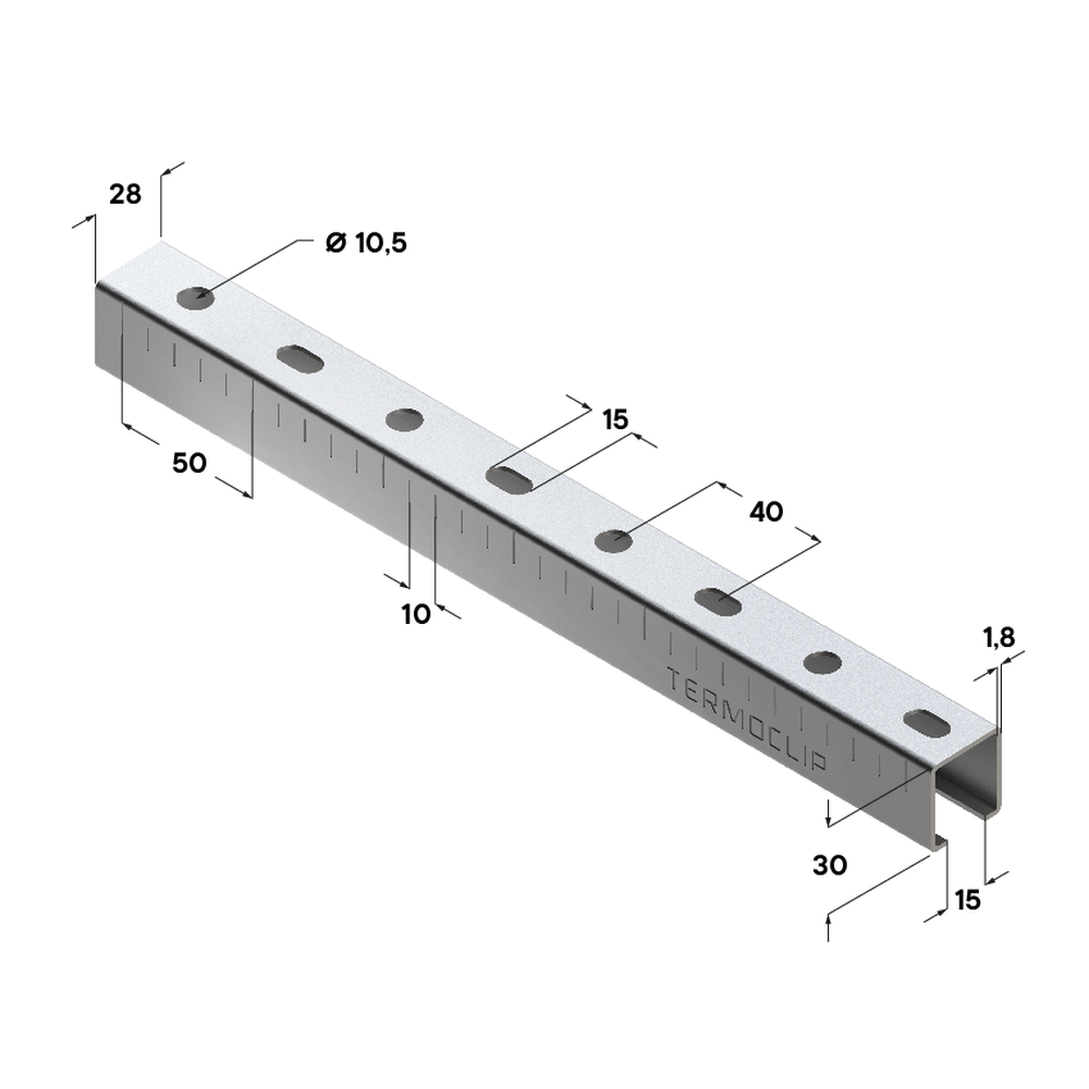 - Сантиметровая шкала обеспечивает быстроту и качество сборки монтажныхсистем.