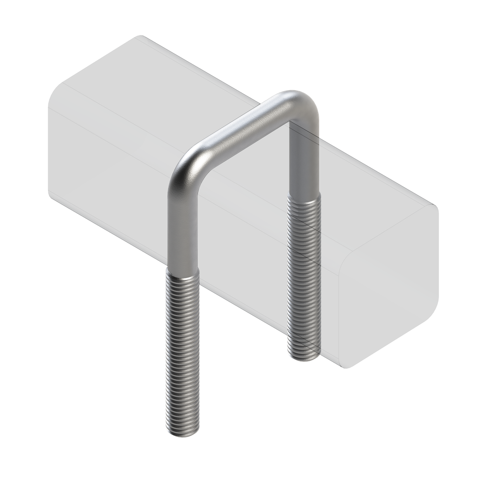 Хомут П – образный, скоба резьбовая. Используется при подвесе балок, труб квадратного или прямоугольного сечения на горизонтальных или вертикальных поверхностях. Крепление осуществляется при помощи гаек и шайб. Дополнительным крепёжным элементом может служить прижимная пластина.Материал: