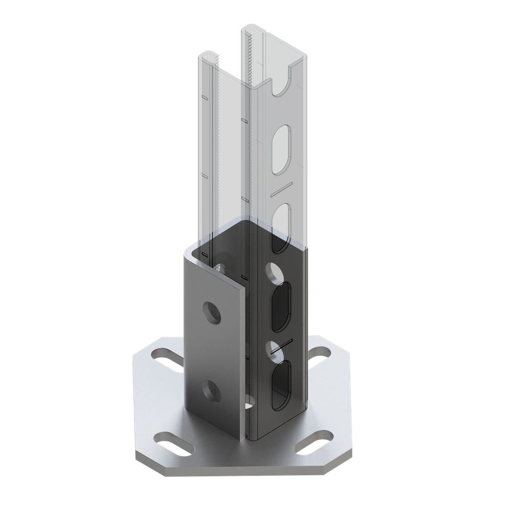 - Наличие четырех профильных отверстий в пластине основания опоры облегчает монтаж и позволяет выполнять небольшую регулировку опоры даже после установки на основание.